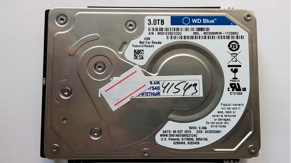 Сегодня речь пойдет о внешнем жестком диске Western Digital WD30NMVW-11C3NS2, 3TB, USB 3.0. До нас его вскрыли в другой организации: судя по всему пытались менять блок магнитных головок. Со слов клиента, не смогли расшифровать данные.